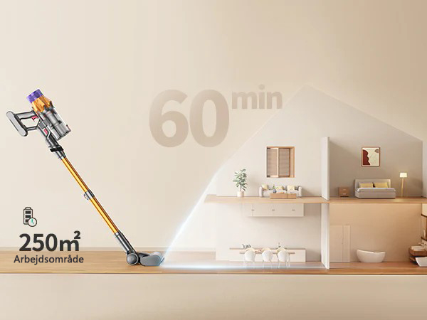 ✔ Forlænget batterilevetid (60 min): Rengør hele hjemmet på én opladning.